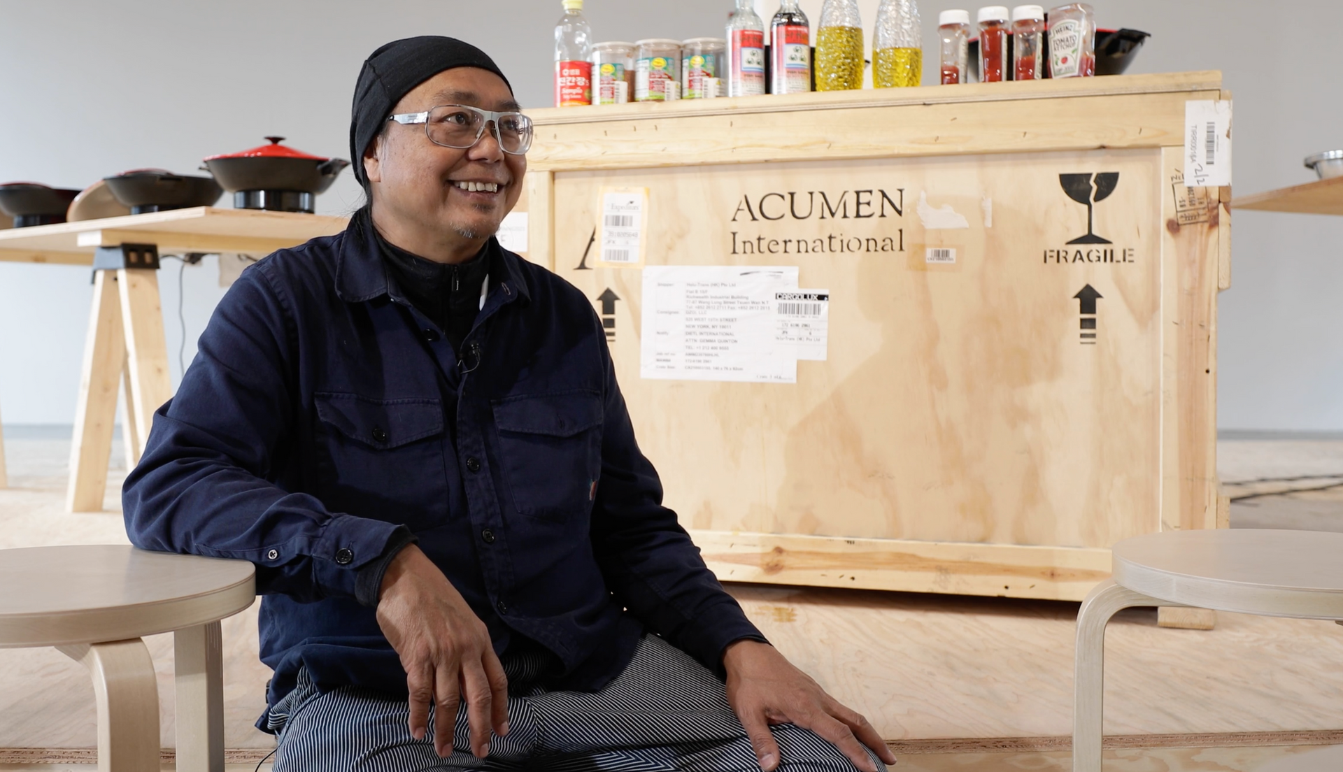 Installation view of Rirkrit Tiravanija: Tomorrow is the Question at Remai Modern, Saskatoon, 2019. Courtesy Remai Modern, Saskatoon.