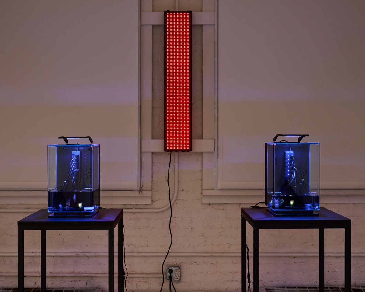 Four Dilations [Cuatro dilataciones] presenta cuatro posturas artísticas que contradicen las formas dominantes de contabilizar el tiempo en la actualidad. El título de la exposición hace referencia a la dilatación temporal, un fenómeno físico que describe cómo el tiempo puede transcurrir a ritmos diferentes para observadores con distintos marcos de referencia. Esculturas e instalaciones desarrolladas a partir de prácticas basadas en el tiempo, como la danza, el cine y la composición sonora, exploran la estructura espacial y material del espacio expositivo. Four Dilations reúne a un grupo internacional de artistas que crecieron bajo el nuevo régimen de gestión digital del tiempo: Nikhil Vettukattil (Bangalore, 1990), residente en Oslo; Richard Sides (Rotherham, 1985), residente en Berlín; Nandi Loaf (Nueva York, 1991) y el dúo neoyorquino formado por Michèle Graf y Selina Grüter (Wetzikon, 1987; Zúrich, 1991). Reconsiderando el concepto de “ahora” bajo los sistemas tecnocráticos que gobiernan la vida en el siglo XXI, sus obras utilizan técnicas de distorsión, recursión y elongación.